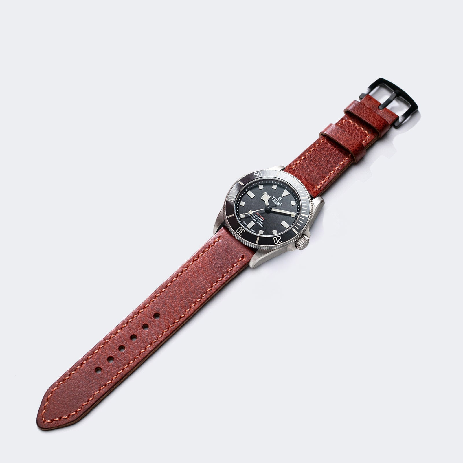 Bu saat kayışı, çift katlı kaliteli deriden el dikişiyle ve özenle üretilir. Hem sağlamlığı hem de rustik havasıyla bir arada sunarak saatlerinize benzersiz bir karakter katar.