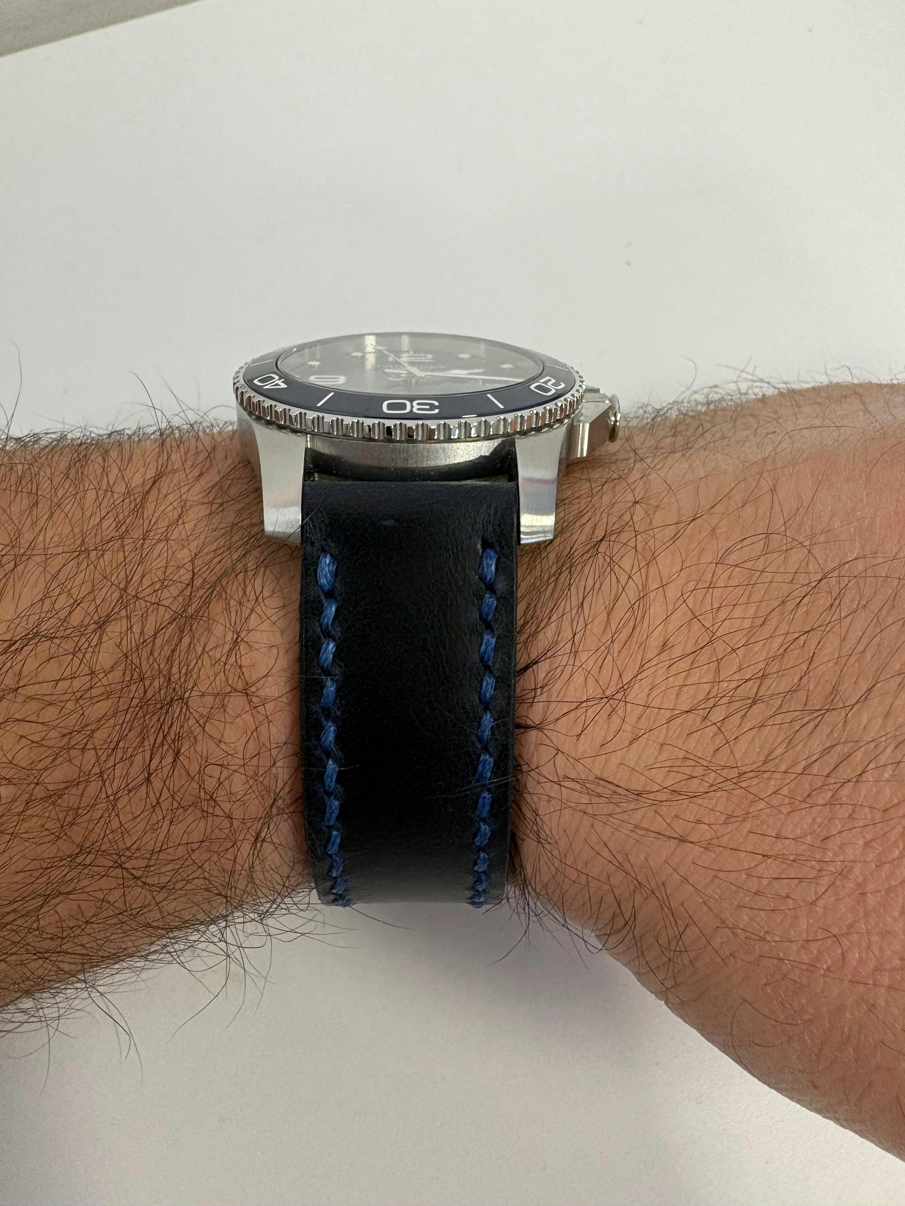 Çift Katlı Deri Saat Kayışı - Indigo Mavi