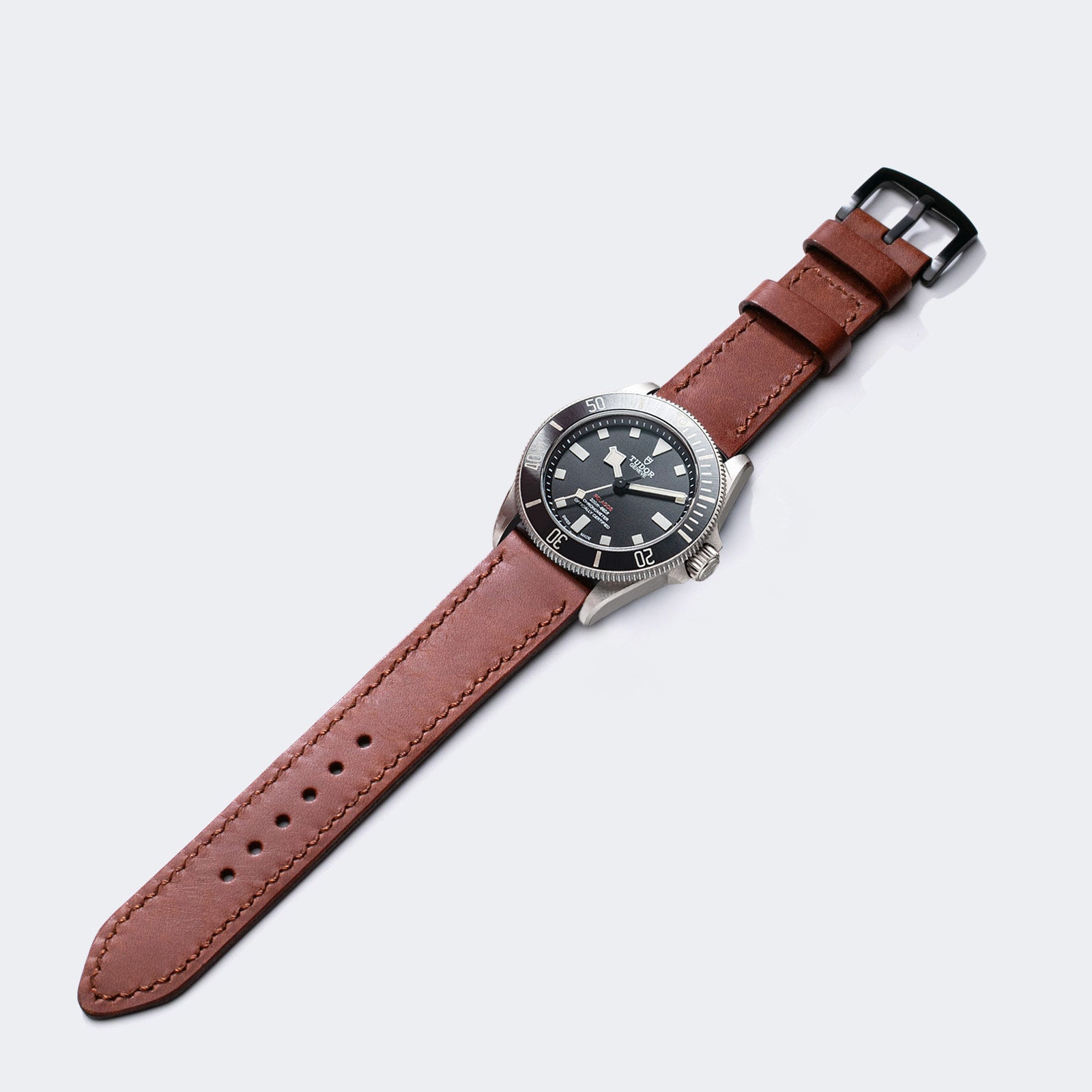 Bu saat kayışı, çift katlı kaliteli deriden el dikişiyle ve özenle üretilir. Hem sağlamlığı hem de rustik havasıyla bir arada sunarak saatlerinize benzersiz bir karakter katar.