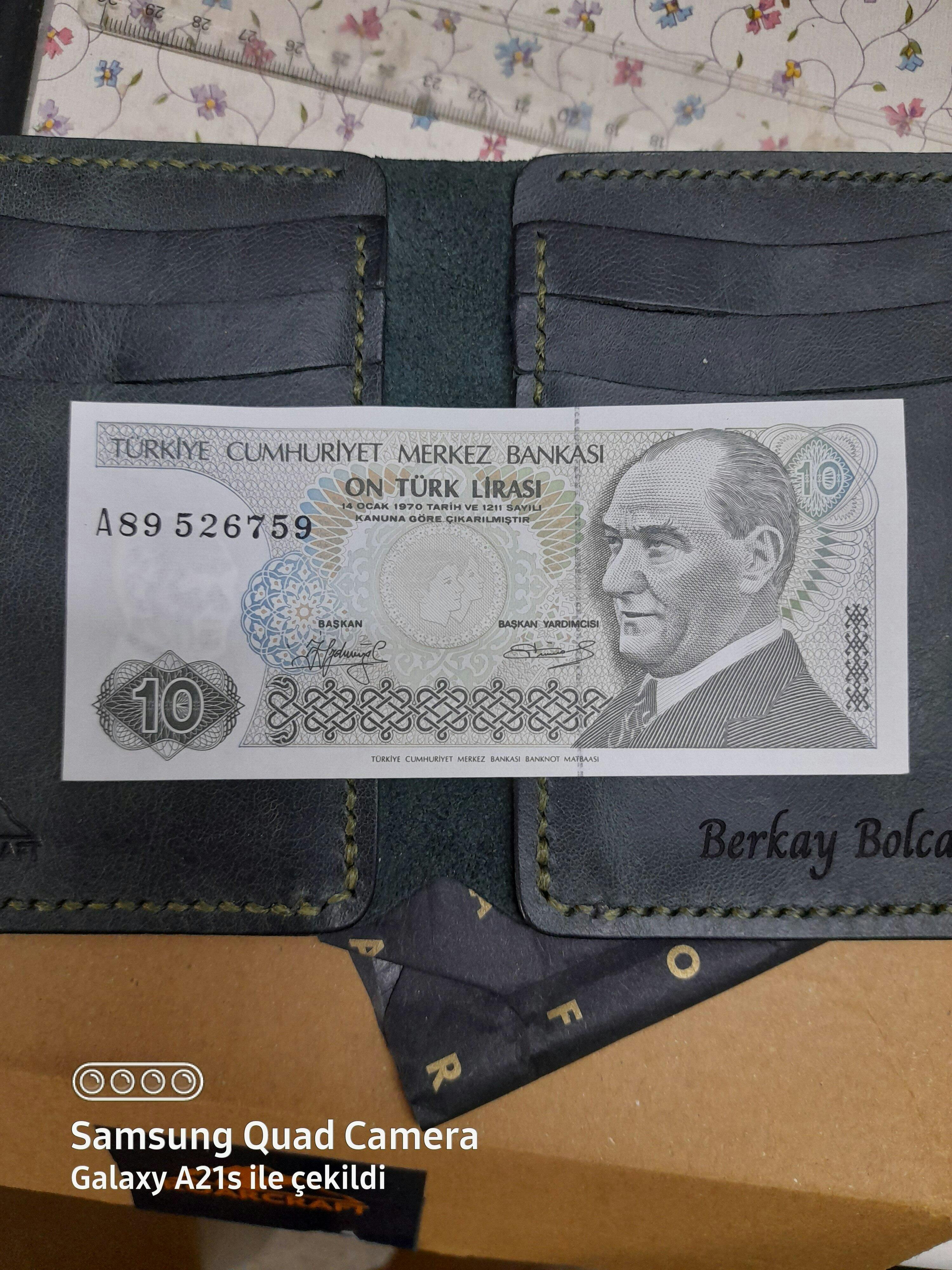 Roarcraft El Yapımı Klasik Deri Cüzdan, yeşil deri detaylarla şık ve dayanıklı aksesuar.